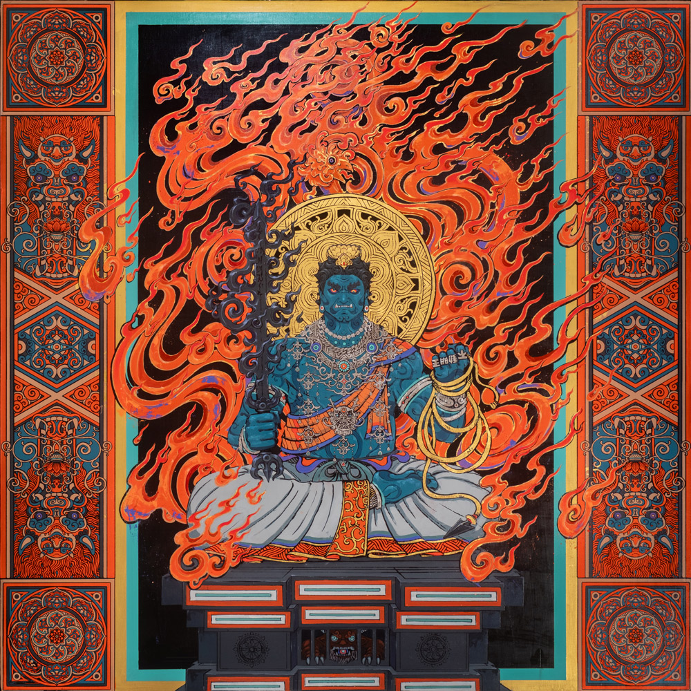 概念としての『死』を征伐する大威徳明王、三世の煩悩を断つ降三世明王、そして不動の心を象徴する不動明王の姿を借り、自分自身の意志と対峙させました。
