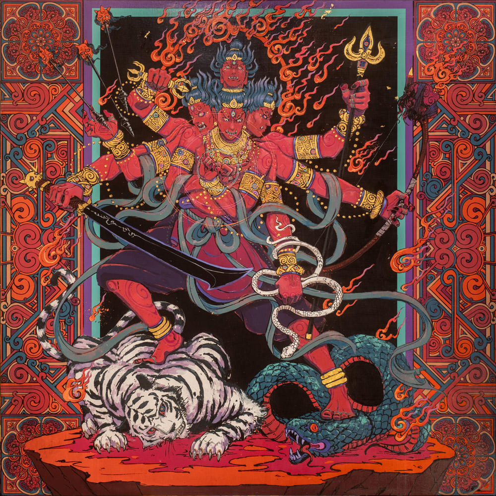 神の不在が語られる時代に、なお仏画を描く理由。 自己を探求し、自分の中に見出した僅かな神性に焦点を当て、それを自分だけでなく他者も寄り添える「意志の拠り所」として可視化することにあります。」(山中智郎)