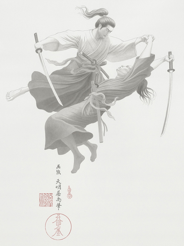 Lines welling up from the depths of the heart play a melody of solitude across infinite space. Rooted in the profound mysteries of the East, the world of ink painting, there ancient souls live within gradations of black, and the cadence of the universe reverberates in quiet stillness.