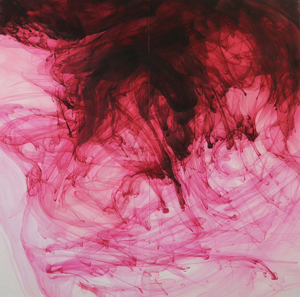 水中の墨が具象的な像となる一瞬が生まれては消える過程に、生命の始まりから終わりに通じる万物の理のようなものを感じ、それを絵画として残し永遠化することを自身が追求すべき作品制作の目的と捉え、試みます。