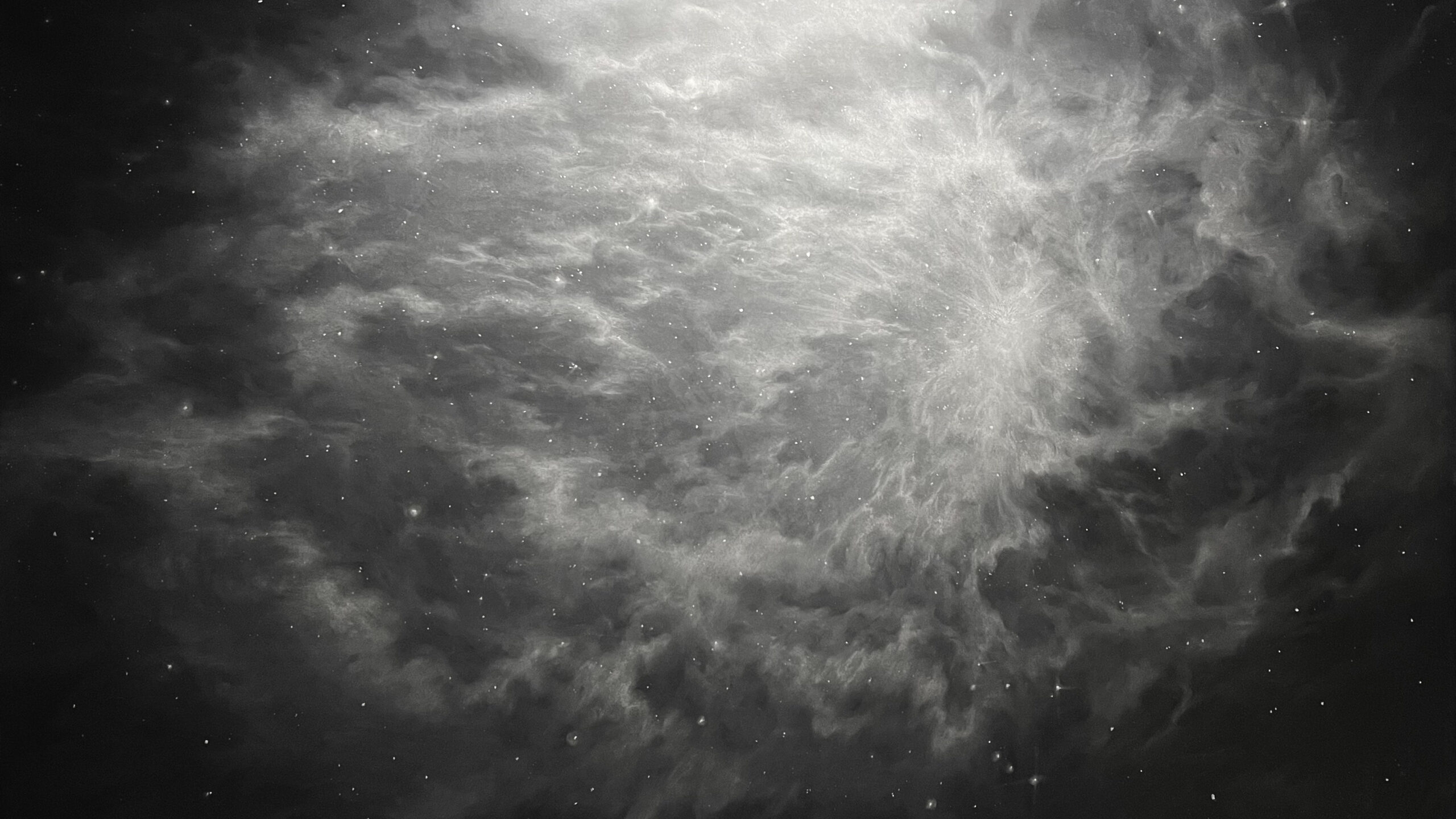 チョークは定着させようとすればすぐに消えてしまい、制作の最中にもわずかな加減で崩れてしまいます。私はそうした予期せぬ作用も受け入れ、作品の一部として取り込んでいます。