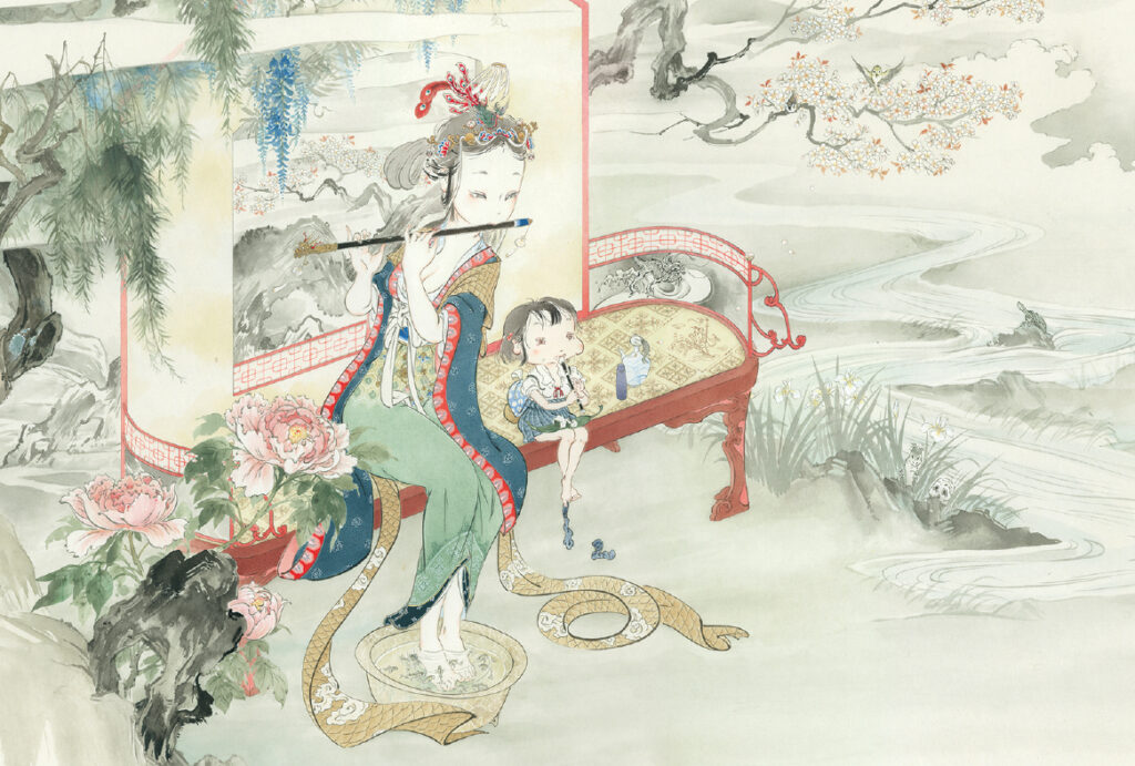 To me, such a girl seems to waver within “awai” (the space in-between)” between life and death, and perhaps that is what draws me to depict her.